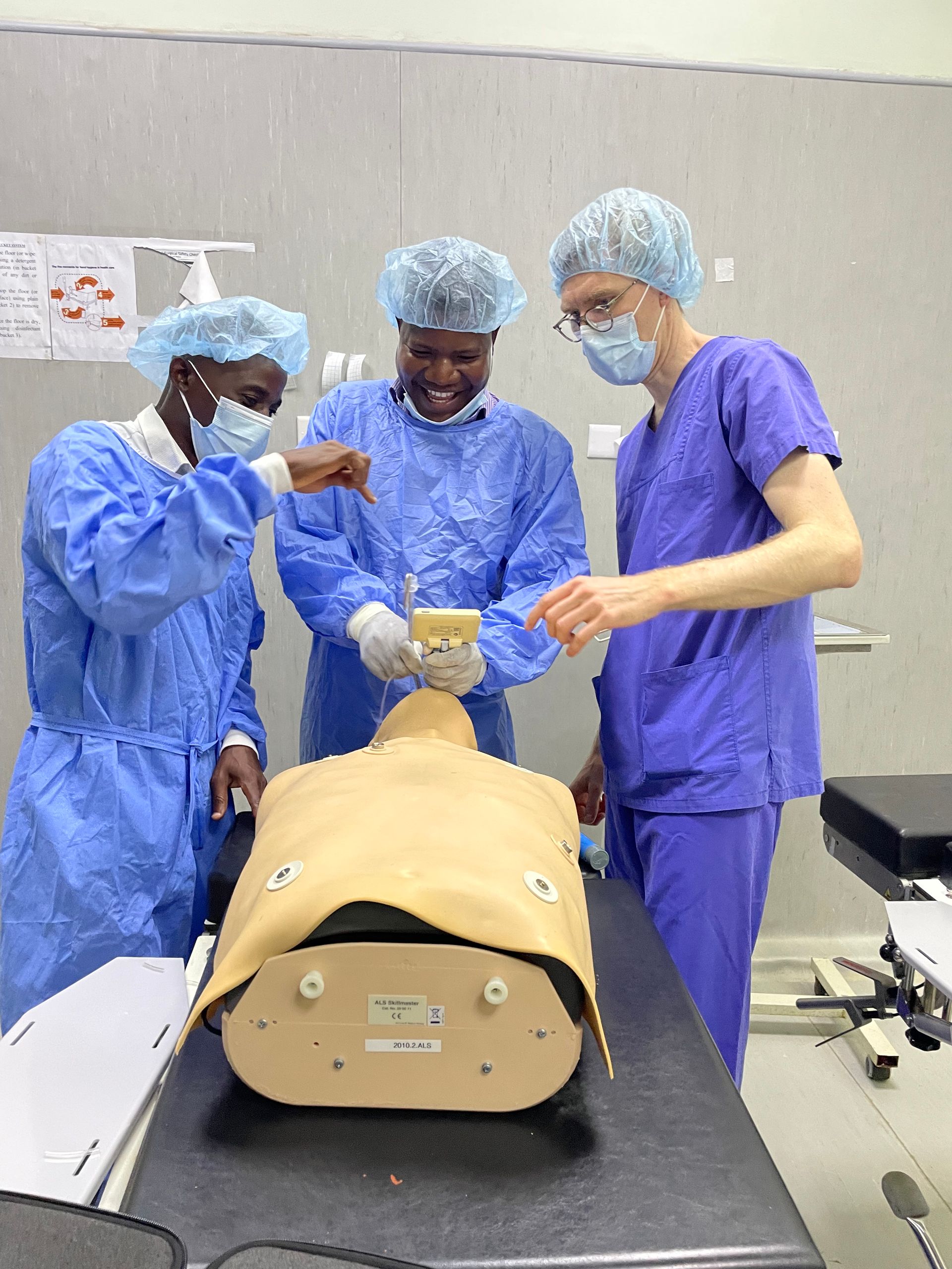 In Malawi stand ein solches Gerät bisher nicht zur Verfügung. Wir sind froh, dem Rev. John Chilembwe Hospital ein solches Gerät spenden zu können. Während unserem Besuch erfolgte auch direkt die Einweisung in das Gerät, sowie ein erstes Training im Umgang damit. Die Anästhesisten am Krankenhaus werden den Einsatz in den nächsten Wochen auch bei Patienten mit einer einfachen Anatomie trainieren, um für den Ernstfall vorbereitet zu sein.